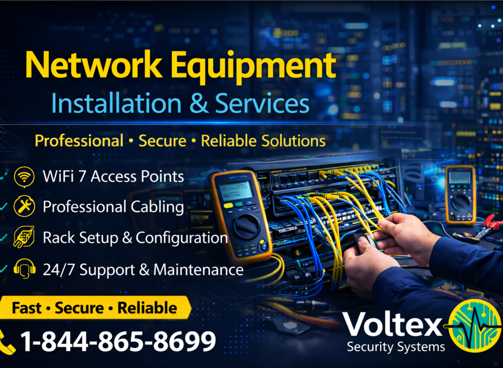 At Voltex Security Systems, we provide professional network infrastructure installation and wireless networking solutions for businesses of all sizes. Our services include WiFi access point deployment, network equipment installation, rack setup, structured cabling, and network optimization.